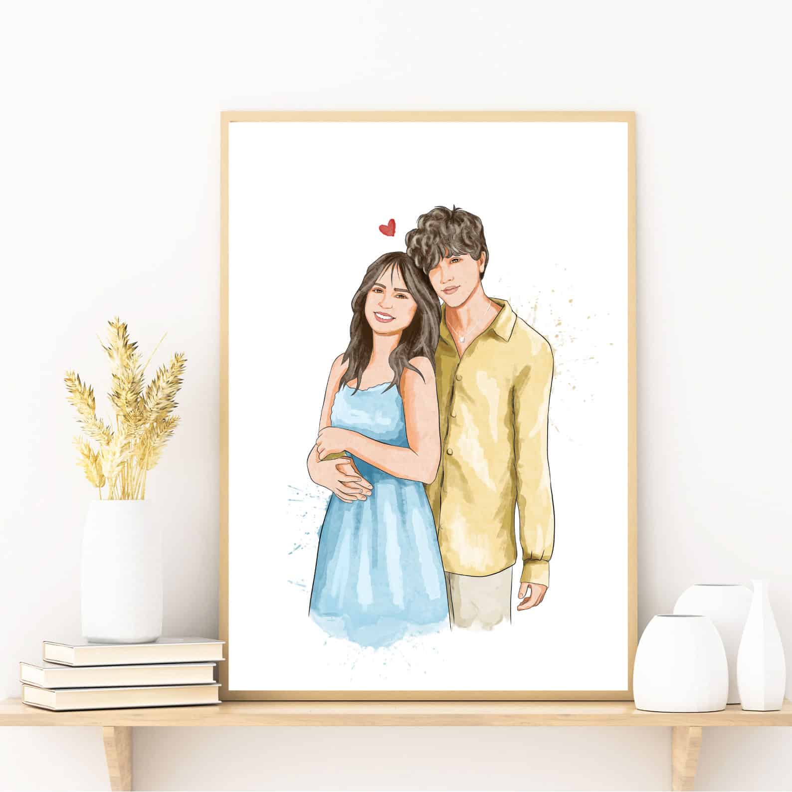 This is a fully hand-drawn portrait, lovingly created on my iPad using a digital pen. Simply upload your favorite photo, and I’ll turn it into a beautiful artwork full of detail and personality.